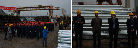 為落實集團總公司《2014年安全生產(chǎn)工作要點》,豐富物產(chǎn)配送公司基層班組建設(shè),促進一線職工綜合技能水平提升,以《吊裝作業(yè)規(guī)范手勢》為標準,檢驗公司一線司吊作業(yè)人員執(zhí)行國家規(guī)范手勢、司吊作業(yè)操作規(guī)程的實際效果,保證全年安全控制目標的實現(xiàn)。物產(chǎn)配送公司在前期宣傳動員、學(xué)習(xí)培訓(xùn)、實戰(zhàn)演練的基礎(chǔ)上,于2014年5月17日上午,舉行職工勞動技能比武大賽。集團總公司黨委書記白家林、集團黨群工作部部長趙宗青、安全環(huán)保部干事劉軍蒞臨現(xiàn)場指導(dǎo)。