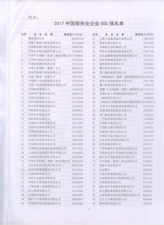 集團(tuán)再次入圍“2017中國服務(wù)業(yè)企業(yè)500強(qiáng)”