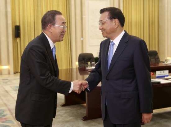 李克強總理會見聯(lián)合國秘書長潘基文時說:"人類面臨的最大挑戰(zhàn),是在處理'減貧'和'應對氣候變化'兩個問題的過程中,取得一個平衡點。"